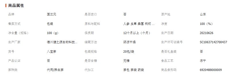| 主营产品或服务 | 主营: 代用/养生茶 运动营养食品 压片糖果 | ||