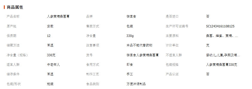 人参黄精桑葚膏330克液体膏 正品人参黄精桑葚滋补养生膏工厂批发
