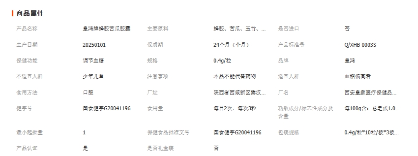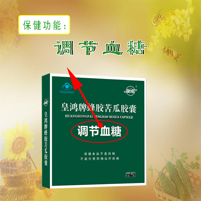 皇鸿牌蜂胶苦瓜胶囊调节血糖适宜人群血糖偏高者蓝帽源头厂家护糖