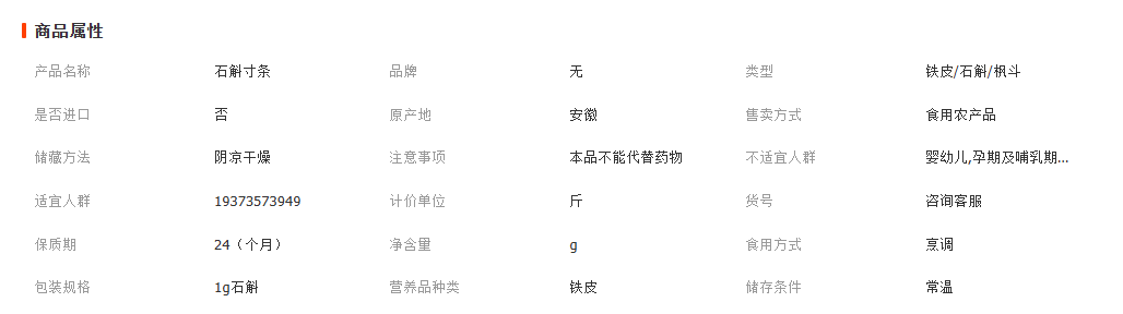 | 主营产品或服务 | 主营: 石斛/枫斗 | ||