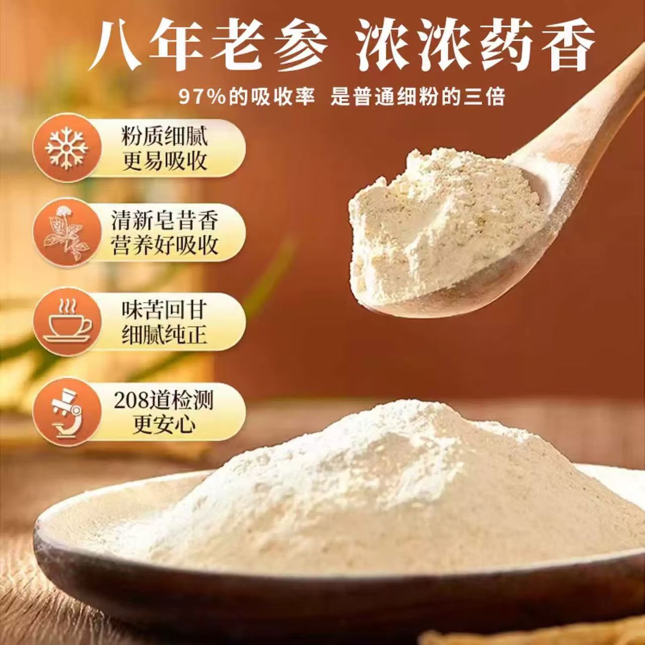 四宝粉400g罐装三七粉天麻粉丹参粉西洋粉组合真材实料打粉质细腻