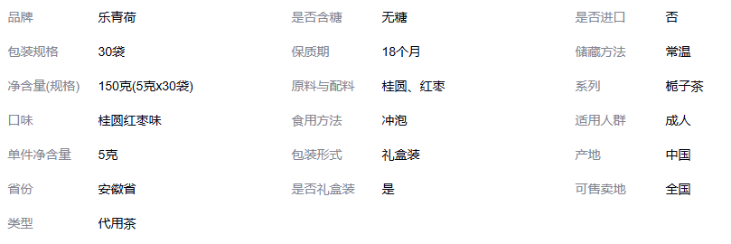 乐青荷栀子茶150克礼盒装桂圆红枣味代用茶30袋