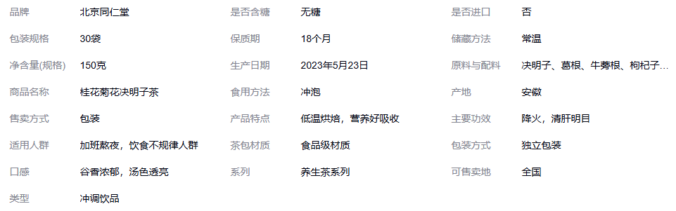 同仁堂桂花菊花配方决明子茶150g(含30小袋)
