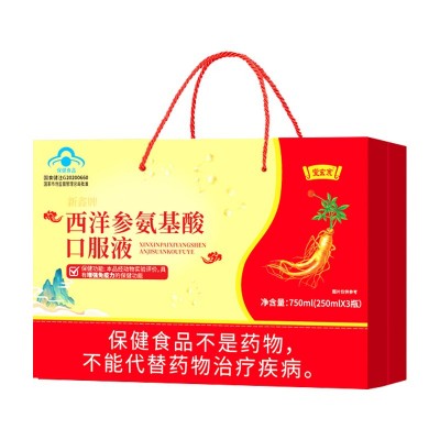 西洋参氨基酸口服液厂家批发礼盒手提送礼蓝帽保健功能增强免疫力