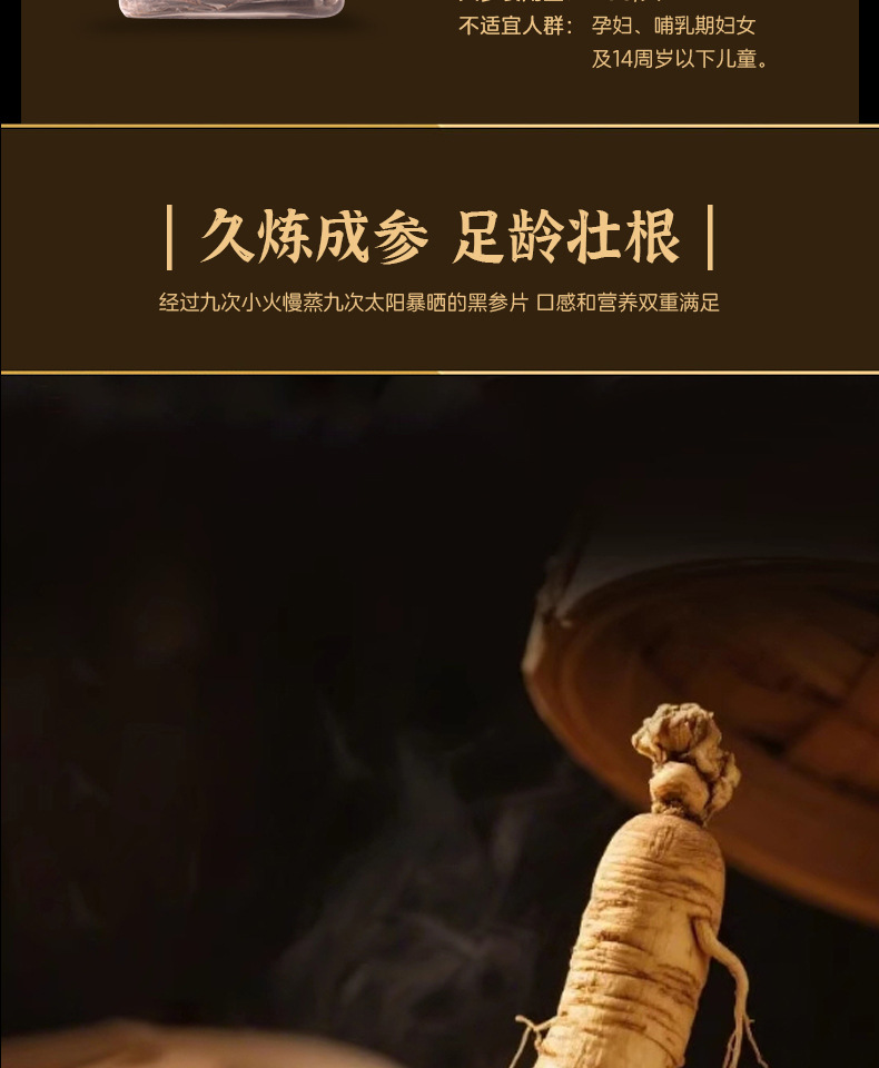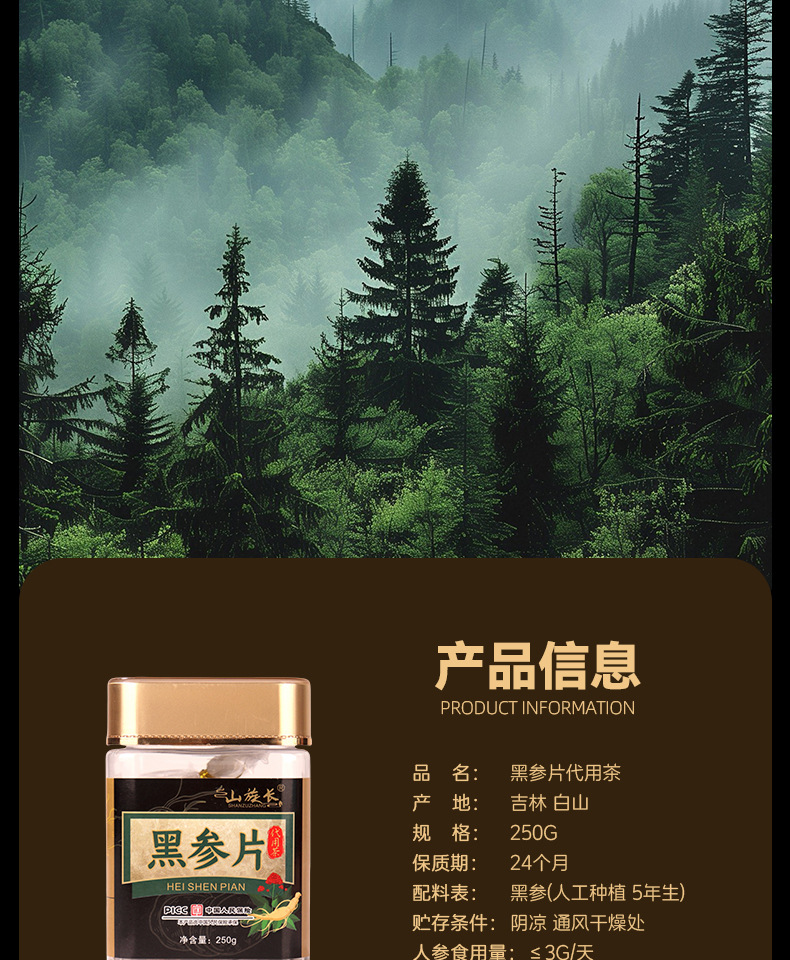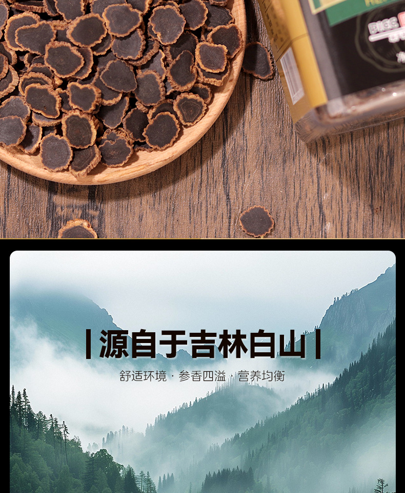 黑参片250g瓶装 足龄黑参切片西洋参长白山九蒸九晒泡茶黑参片