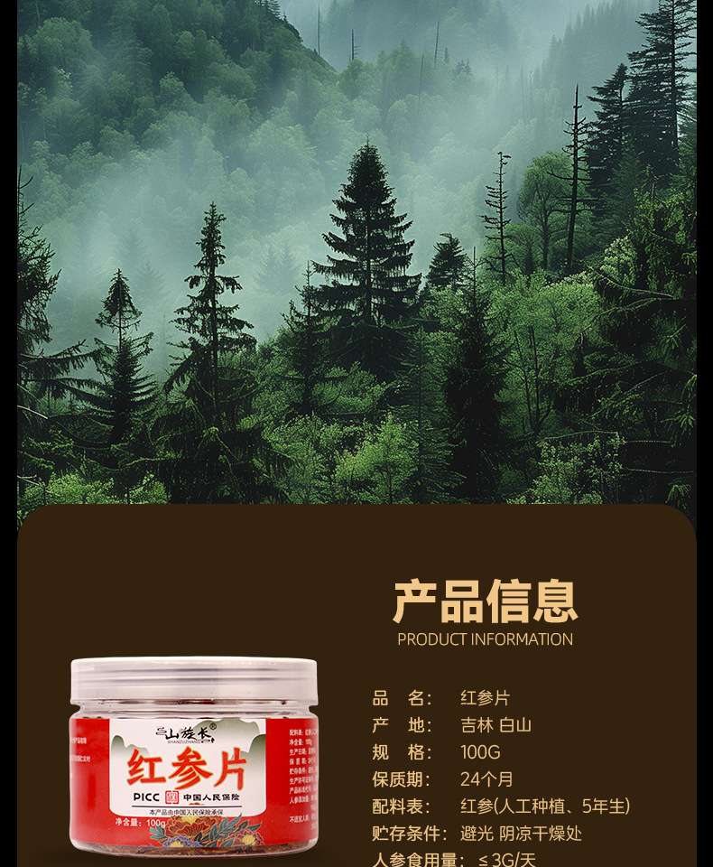 红参片厂家批发罐装红参片100g长白山红参不加糖滋补礼品现货代发