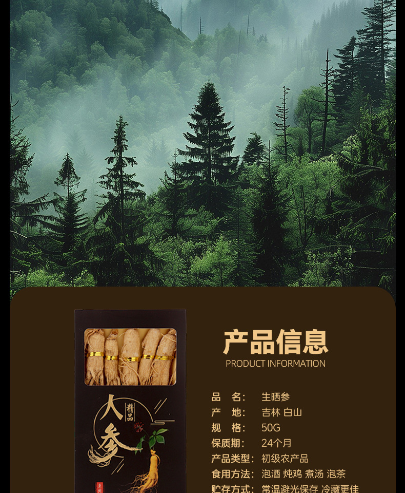 长白山人参 干参礼盒 生晒参泡酒料整枝白参东北特产干货分销代发