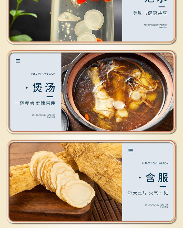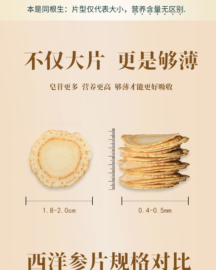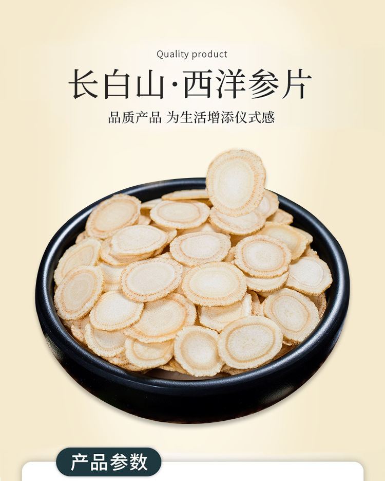 长白山原枝西洋参片批发整枝花旗参切片散装西洋参含片多规格圆片