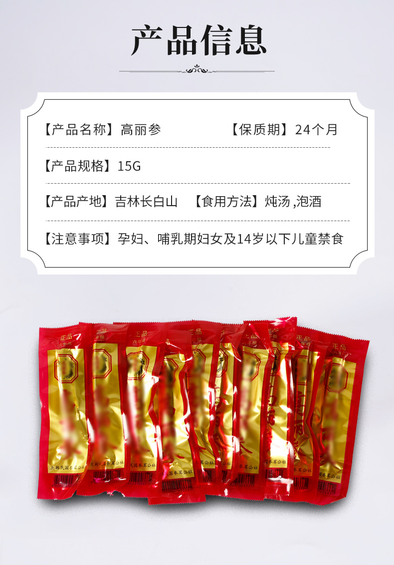 高丽参厂家长白山高丽参东北特产别直参6年根红参