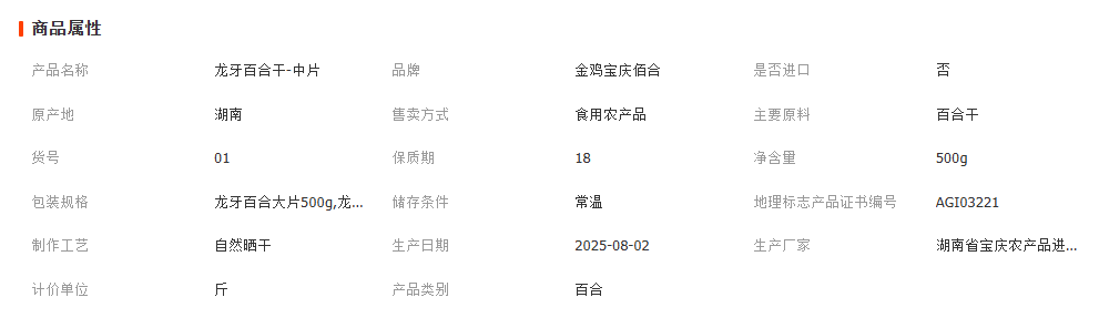 湖南龙牙百合(大中小片)500g无硫百合干源头种植基一件代发