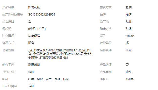 | 主营产品或服务 | 鱼胶/花胶 其他滋补 方便粥类 | ||