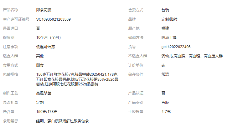 | 主营产品或服务 | 鱼胶/花胶 其他滋补 方便粥类 | ||