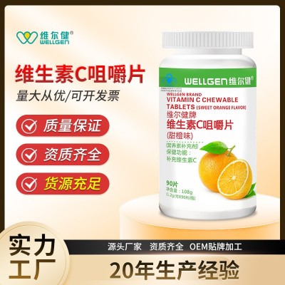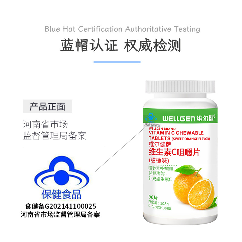蓝帽多种水果味维生素c现货批发苹果味甜橙味维c片保健品厂家代发
