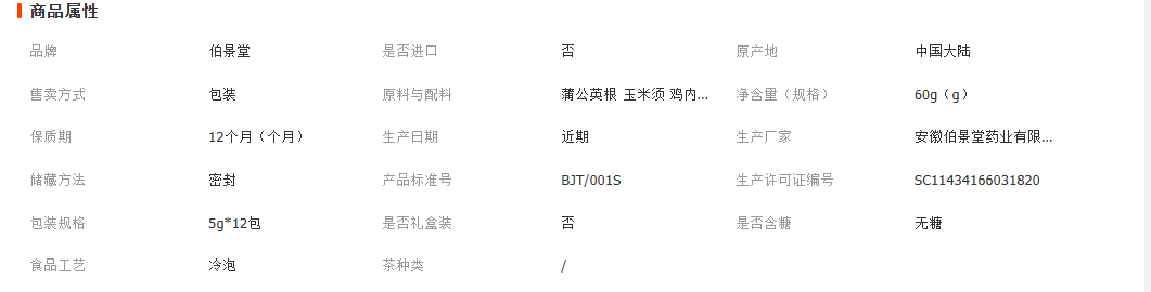 | 主营产品或服务 | 主营: 代用/养生茶 其他药食同源 其他冲调饮品 | ||