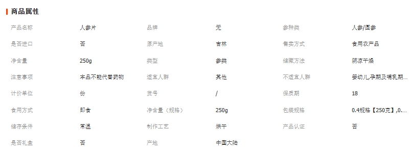 人参片 东北长白山生晒参 白参 干参 批发整枝切片散装250g 泡水