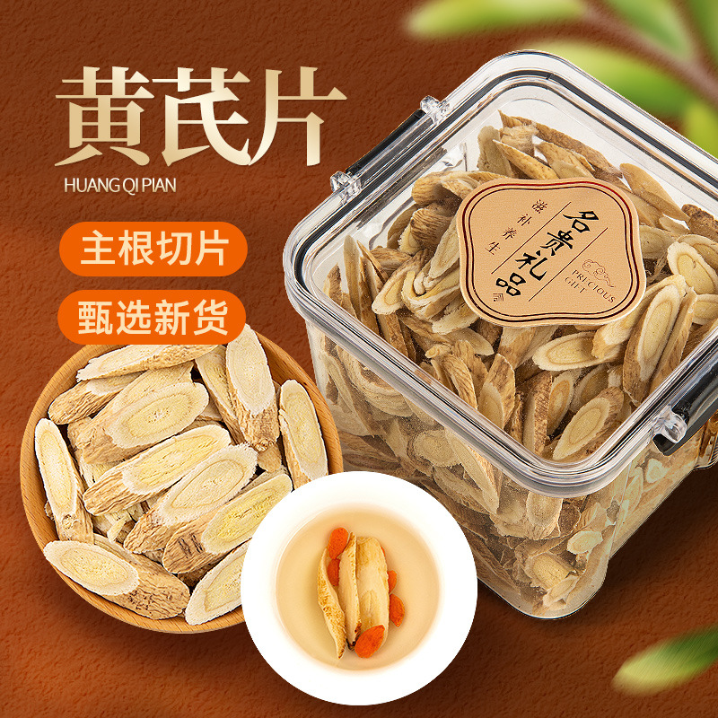 黄芪甘肃陇西产地现货黄芪片煲汤泡水泡茶无熏硫批发代发250g盒装