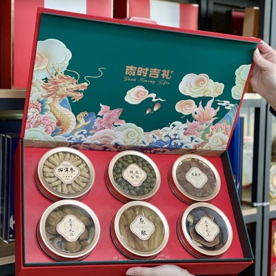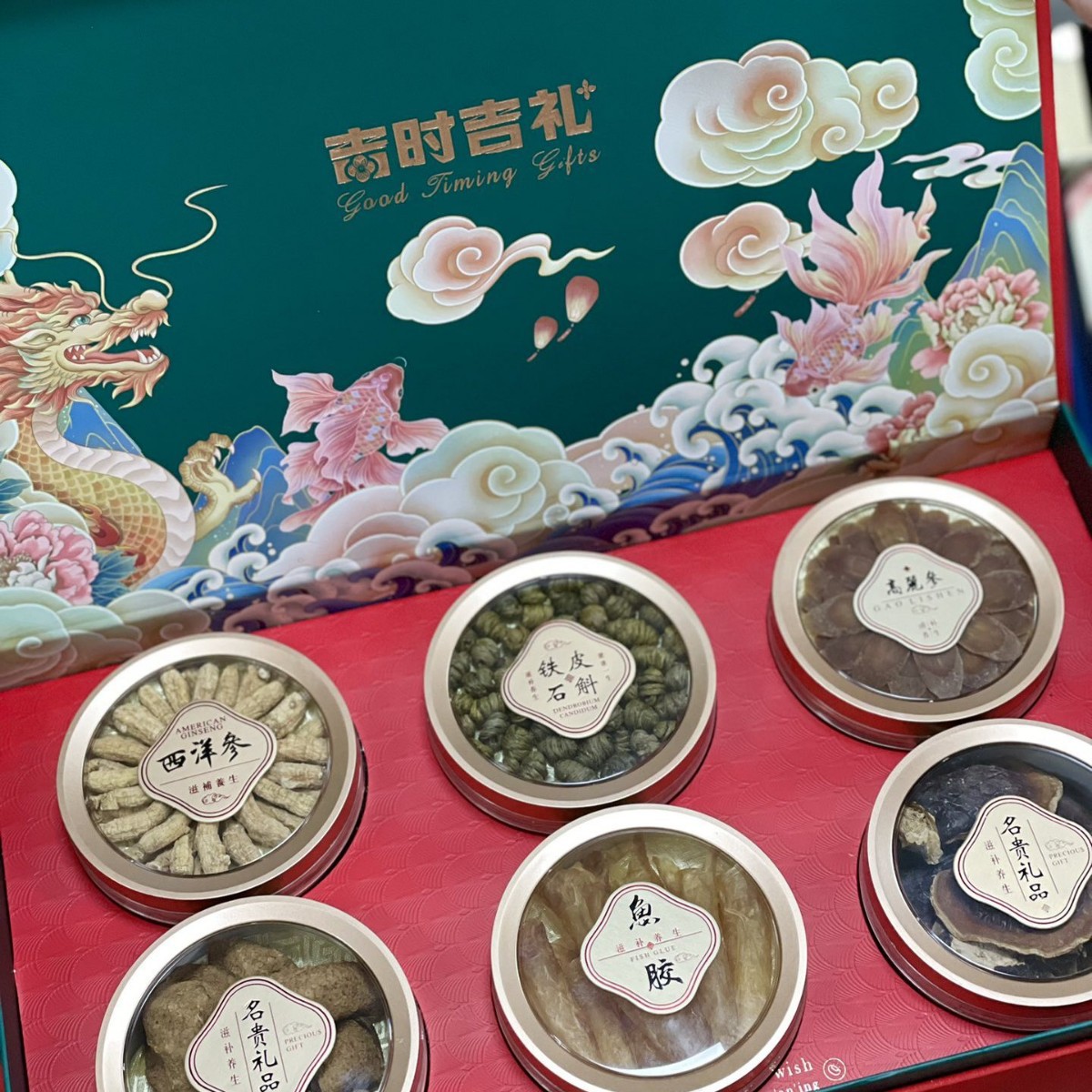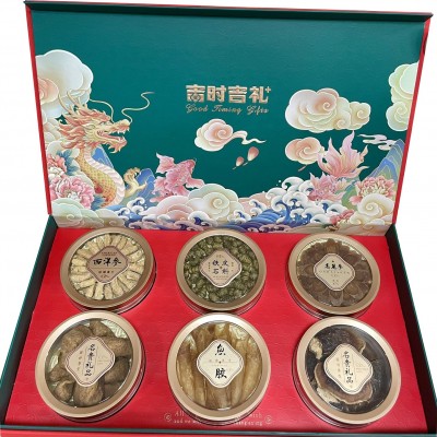吉时吉利六拼礼盒灵芝石斛西洋参鱼胶红参陈皮多拼中秋礼盒批发