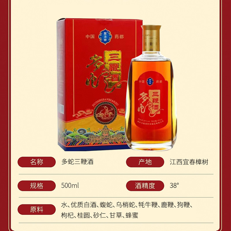 鑫瑞特多蛇三鞭酒 鹿鞭酒男性养生酒礼盒装38度补酒药材泡酒药酒