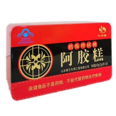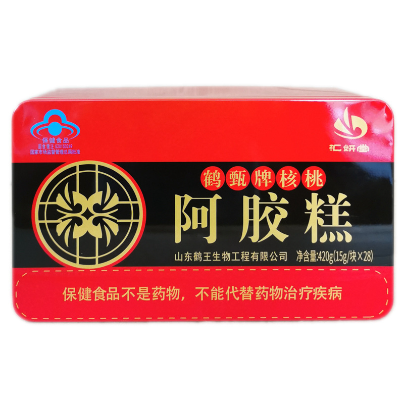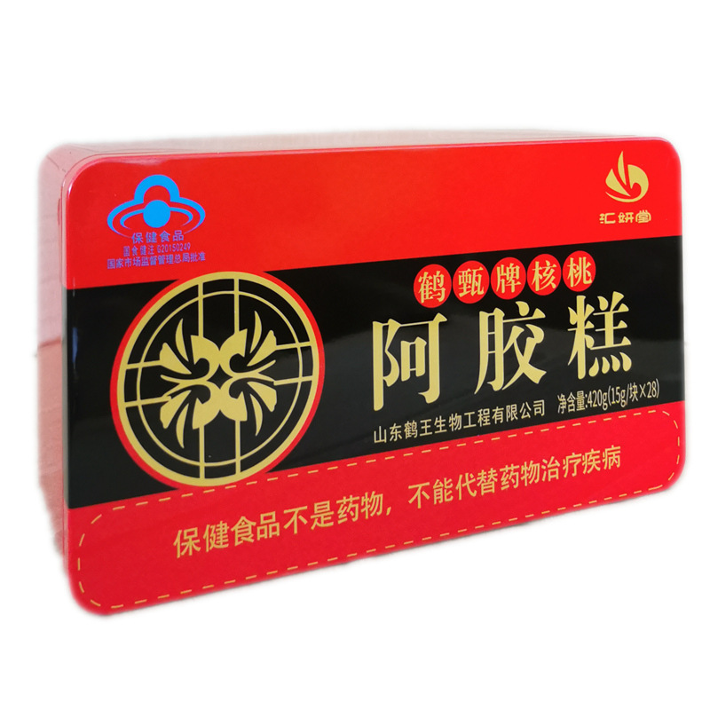 汇妍堂鹤甄牌核桃阿胶糕 山东鹤王蓝帽保健核桃仁黑芝麻 铁盒装