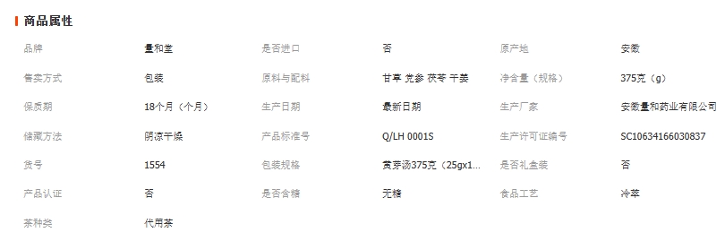 正品黄芽汤375克甘草5克党参10克干姜5克茯苓5克独立袋包装