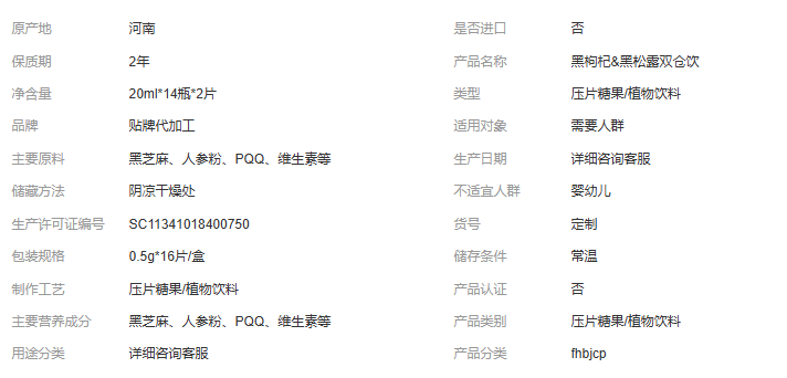 刺梨人参复合饮黑枸杞PQQ豌豆肽人参黑松露双仓饮OEM贴牌定制代工