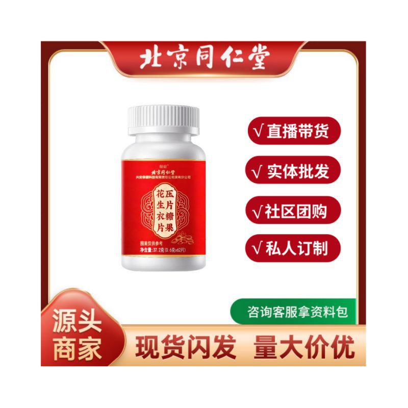 北京同仁堂花生衣片37.2g红皮花生衣粉压片糖果批发新品现货批发