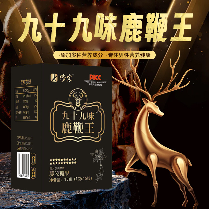 九十九味鹿鞭王凝胶糖果男性食品提高战斗力抖音快手现货一件代发