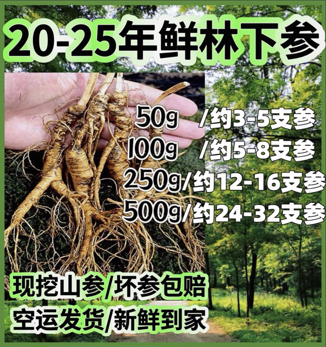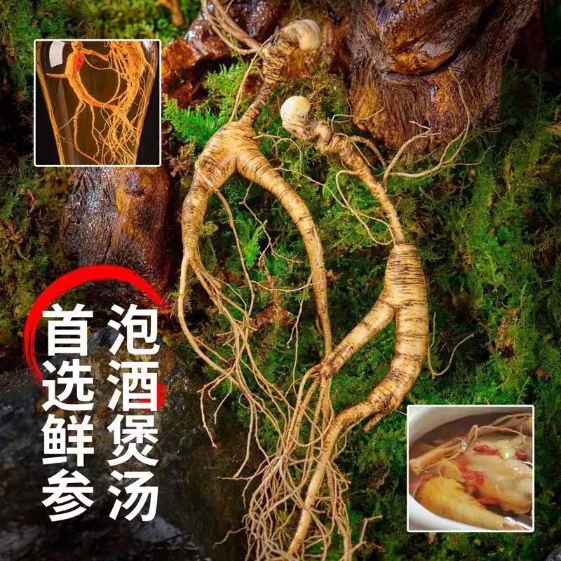 鲜人参长白山鲜林下参老山参新鲜籽参整枝山参泡酒煲汤送礼佳品