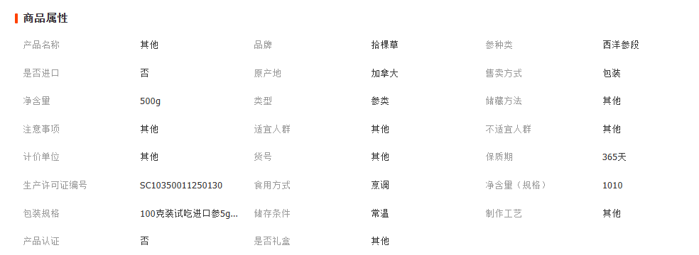 西洋参加拿大进口整根500g花旗粒头粉材人参片