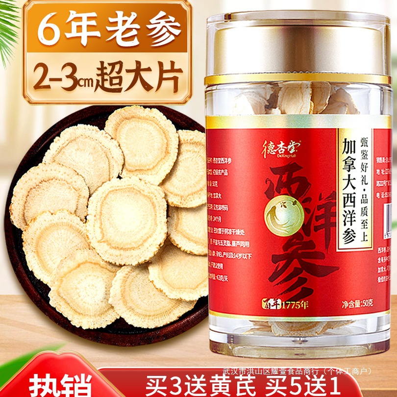 加拿大进口西洋参片 正品官方旗舰店 500g花旗参大切片礼盒含片粉