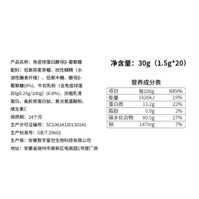9谷一仓免疫球蛋白酵母β-葡聚糖 复合牛初乳全家适用便携固体饮