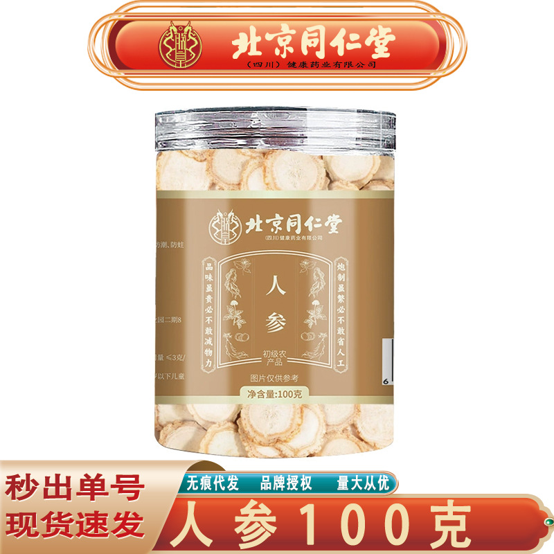 北京同仁堂人参片 中药材长白山新货花旗参人参片100克无痕代发