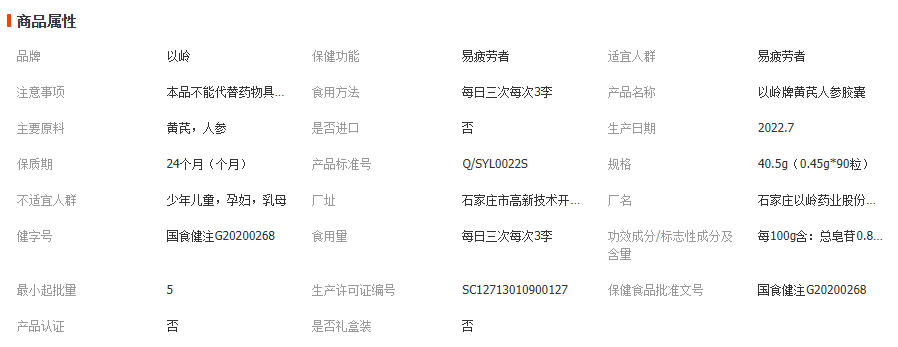 以岭药业黄芪人参胶囊保健批发食品人参高含量药品