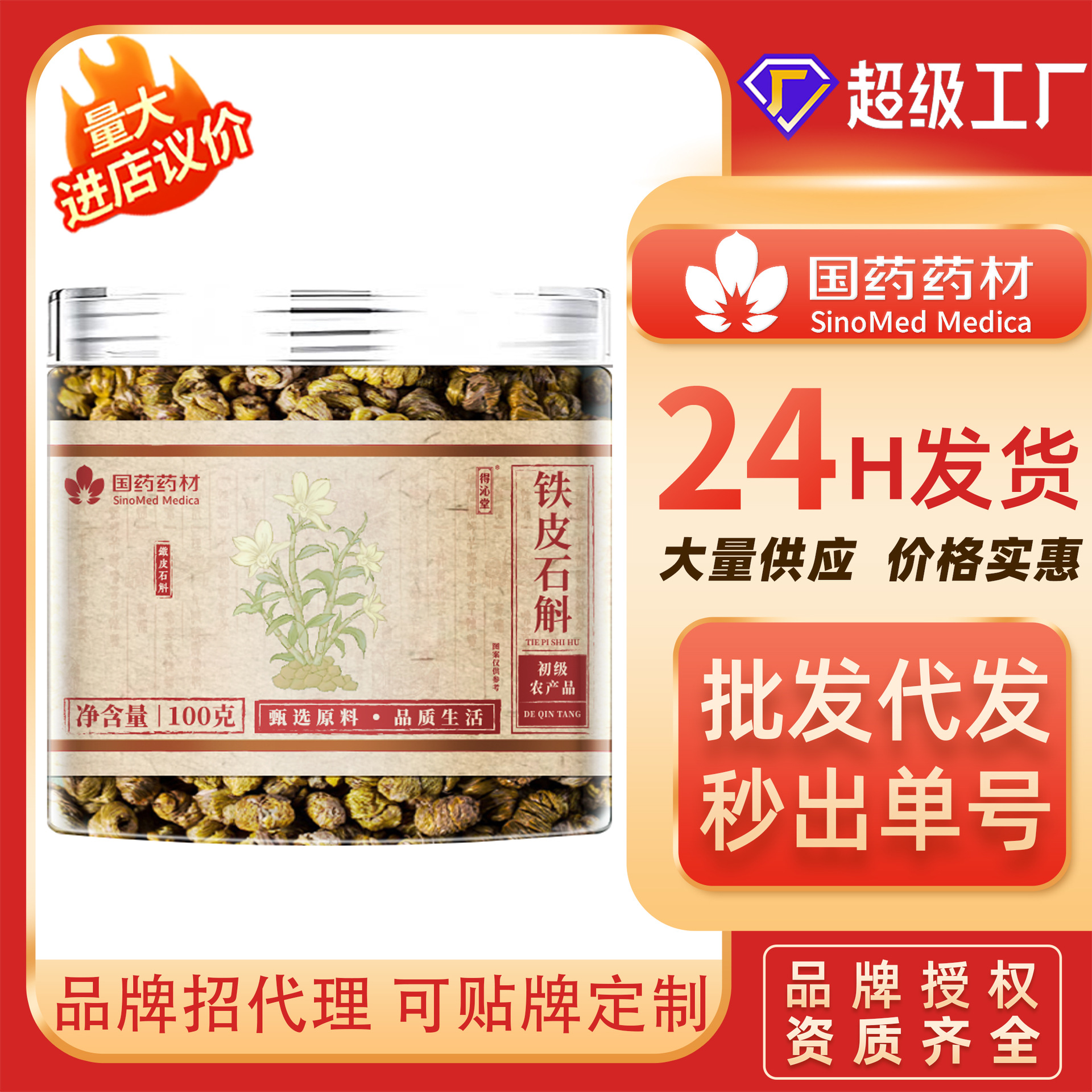 铁皮石斛国药药材100g盒煲汤泡茶新货正品厂家直销整箱批发代发