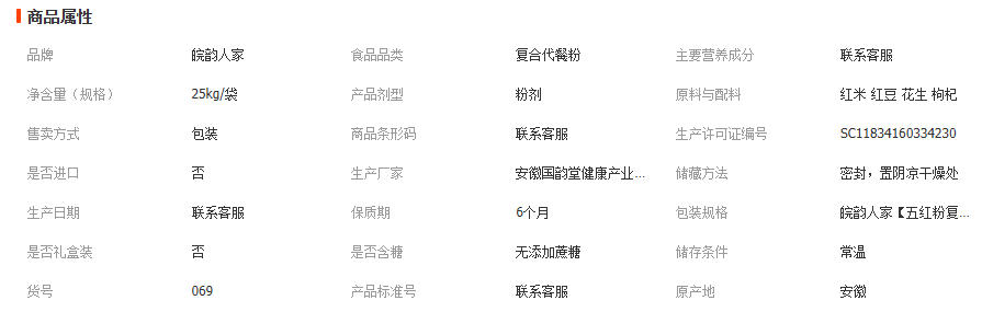 皖韵人家 五红粉 25kg/袋 红米 红豆 花生 枸杞 代餐粉 大货批发