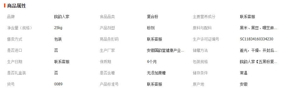 皖韵人家 五黑粉 25kg/袋 黑豆 黑芝麻 黑米 代餐粉 大货批发