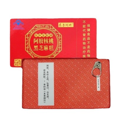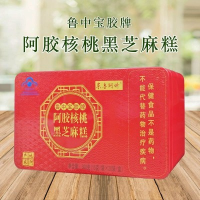 蓝帽鲁中宝胶牌阿胶核桃黑芝麻糕阿胶开袋即食礼袋铁盒300g