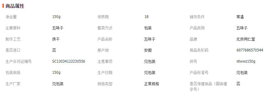 北京同仁堂内廷上用五味子160g/罐甄选精品可一件代发批发