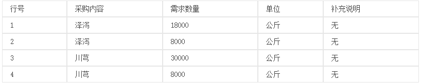 采购内容和范围:川芎选货,统货;泽泻选货,统货